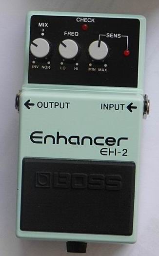 Regler für MIX (Hinzumischen des Effektes, auch phasenverkehrt) FREQ (untere Einsatzfrequenz) SENS (Empfindlichkeit auf den Pegel des Eingangssignals) Sound