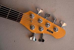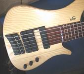 Über die letzten beiden Jahrzehnte hat Jochen Imhof (Mr. Sign Guitars) für mich einige Gitarren und Bässe modifiziert, Reparaturen durchgeführt, Fräsungen für andere Tonabnehmer gemacht oder einen Bass von bundiert auf bundlos umgebaut. Mit der Zeit entwickelten wir Ideen für einen Bass, der sowohl meine mir liebsten Konzepte, als auch den typischen Sign-Guitars-Style vereint. Im Frühjahr 2011 entschlossen wir uns dann, das Vorhaben konkret anzugehen und den Bass zu entwerfen. Die für mich wichtigsten Punkte sind dabei - Sechssaiter - Sound wie ein spezieller von Jochen gebauter roter 5er Jott Bass - stark gefächertes Griffbrett: enges Stringspacing in den tiefen Lagen, weites Stringspacing für die rechte Hand - 3 Singlecoil-Tonabnehmer, passive Elektronik, alle Tonabnehmer beliebig kombinierbar - auffällige Optik Typisch für Sign Instrumente ist - klassische Tonhölzer (Ahorn, Palisander, amerikanische Erle) - an Onkel Leos Gitarren angelehntes Design - ausgefeilte retro-Optik