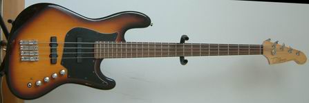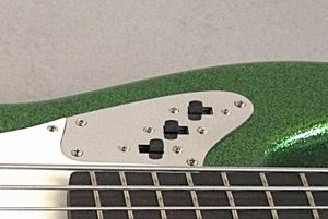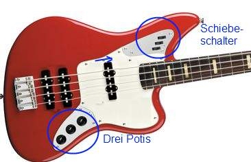 Genau! Das ist es! Der andere Jott-Bass. Der Jaguar. Voll retro, Metallplatten,