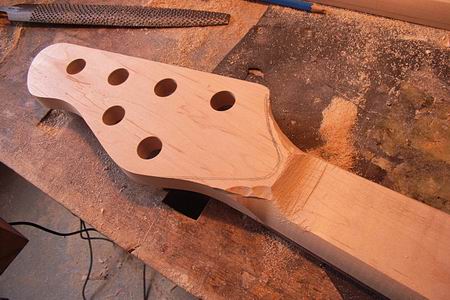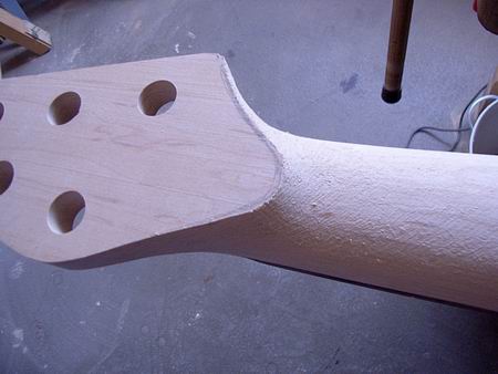 Der Übergang zwischen Hals und Kopfplatte wird herausgearbeitet.