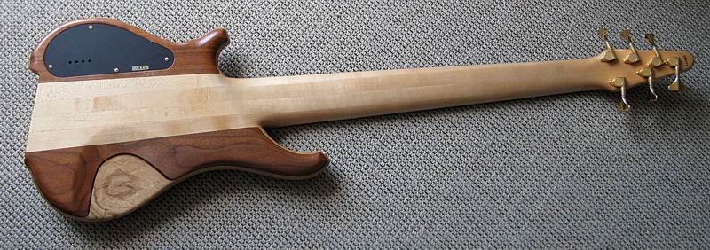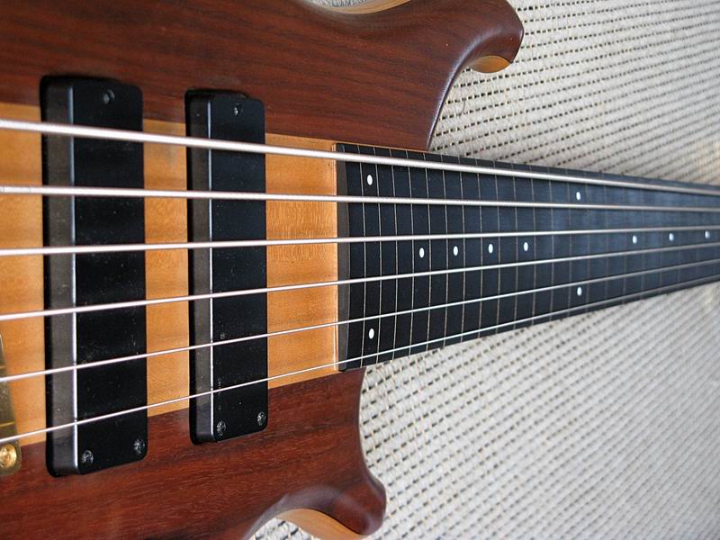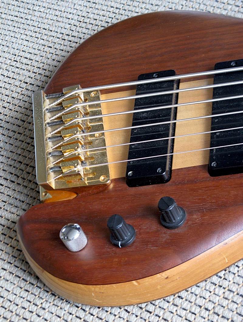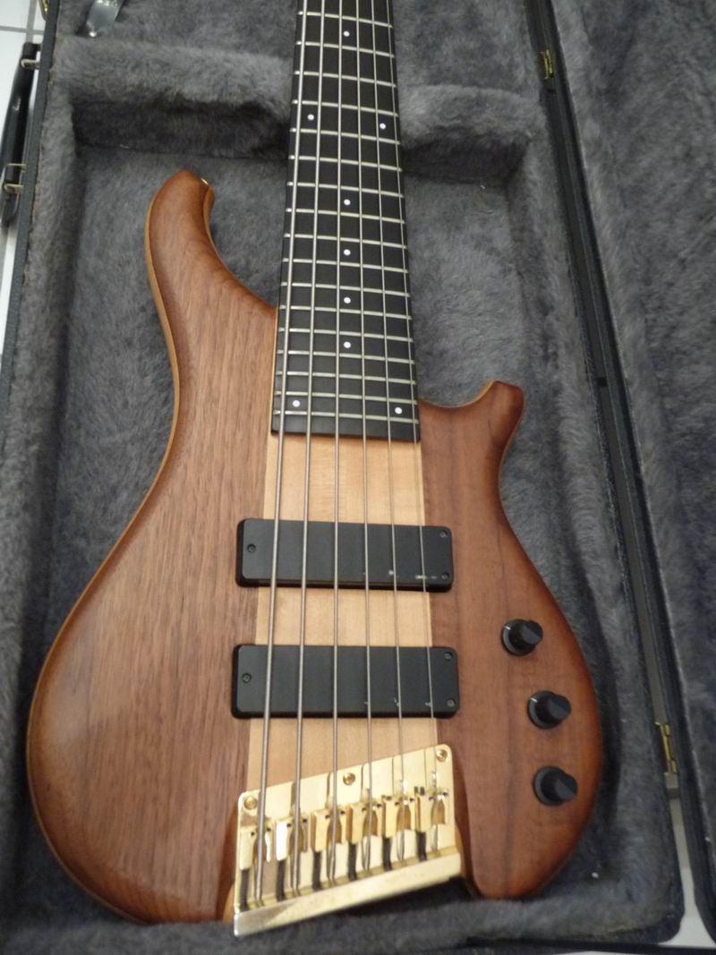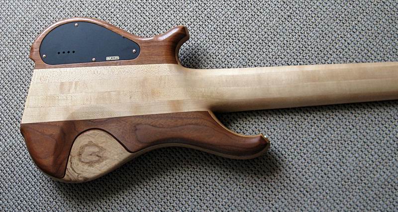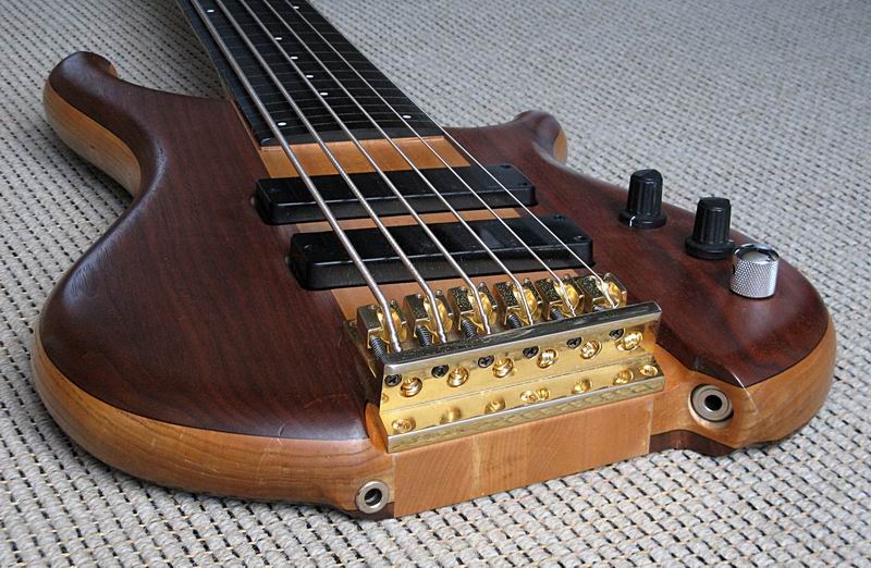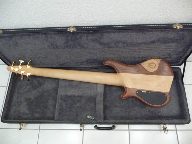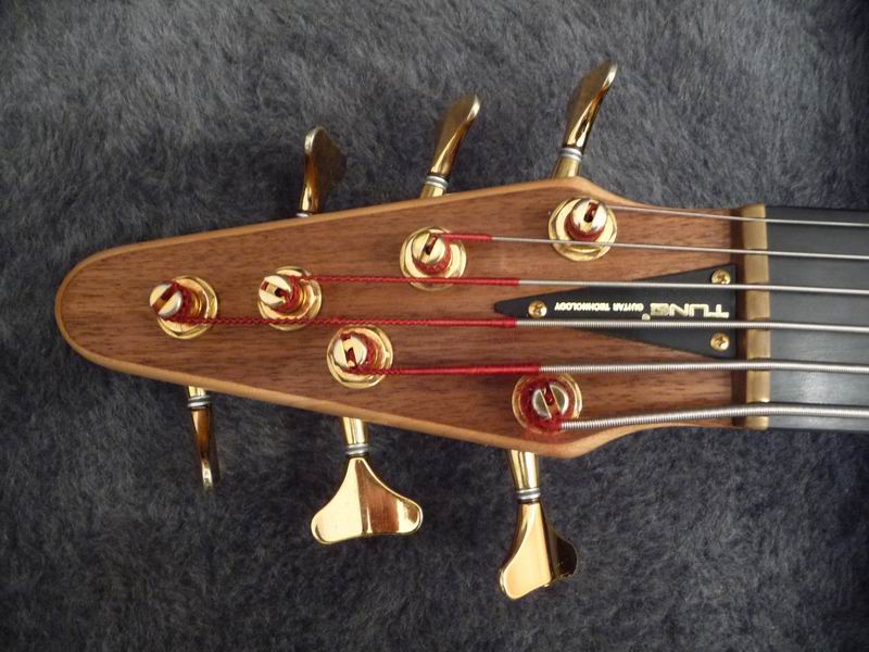 Ein sehr interessantes Instrument aus den 90ern. Durchgehender Ahornhals, angeleimter Esche- und Nußbaumbody, knallhartes, ganz feines Ebenholzgriffbrett, eine extramassive Messingbrücke, eigene Pickups und eine ausgefuchste Aktivelektronik mit internem 4-Band-EQ, dazu das ultrabreite Griffbrett formen ein exakt und dynamisch reagierendes Instrument mit cleaner, pumpender Charakteristik. Bei Bedarf haut der Tune unglaubliche Donnerbässe heraus, da bekomme sogar ich Angst um meine Boxen. Was ich mir direkt gedacht habe: das könnte ein feiner Fretless sein! Und somit habe ich den Bass in die kompetenten Hände von SIGN GUITARS gegeben, um den Umbau vorzunehmen.