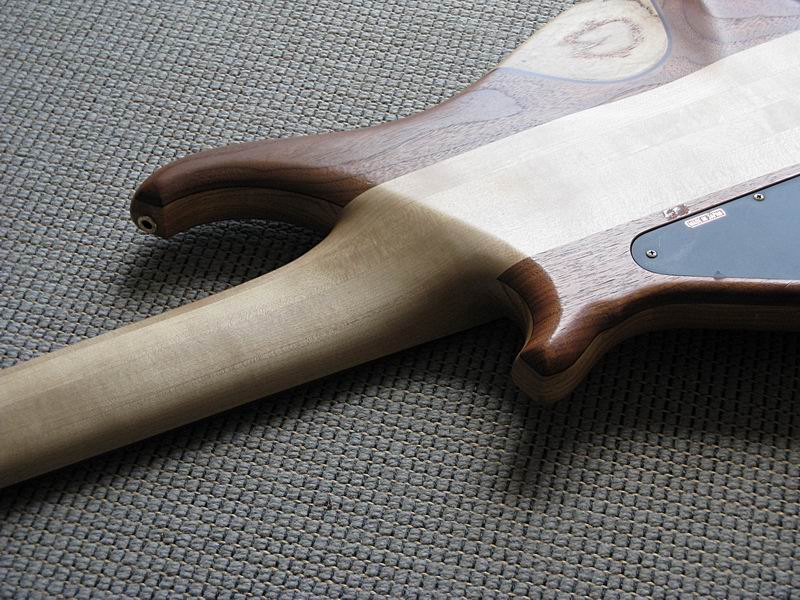 bemerkenswert: der Headstock ist nicht angeleimt, sondern aus einem Stück mit dem Hals gefertigt: